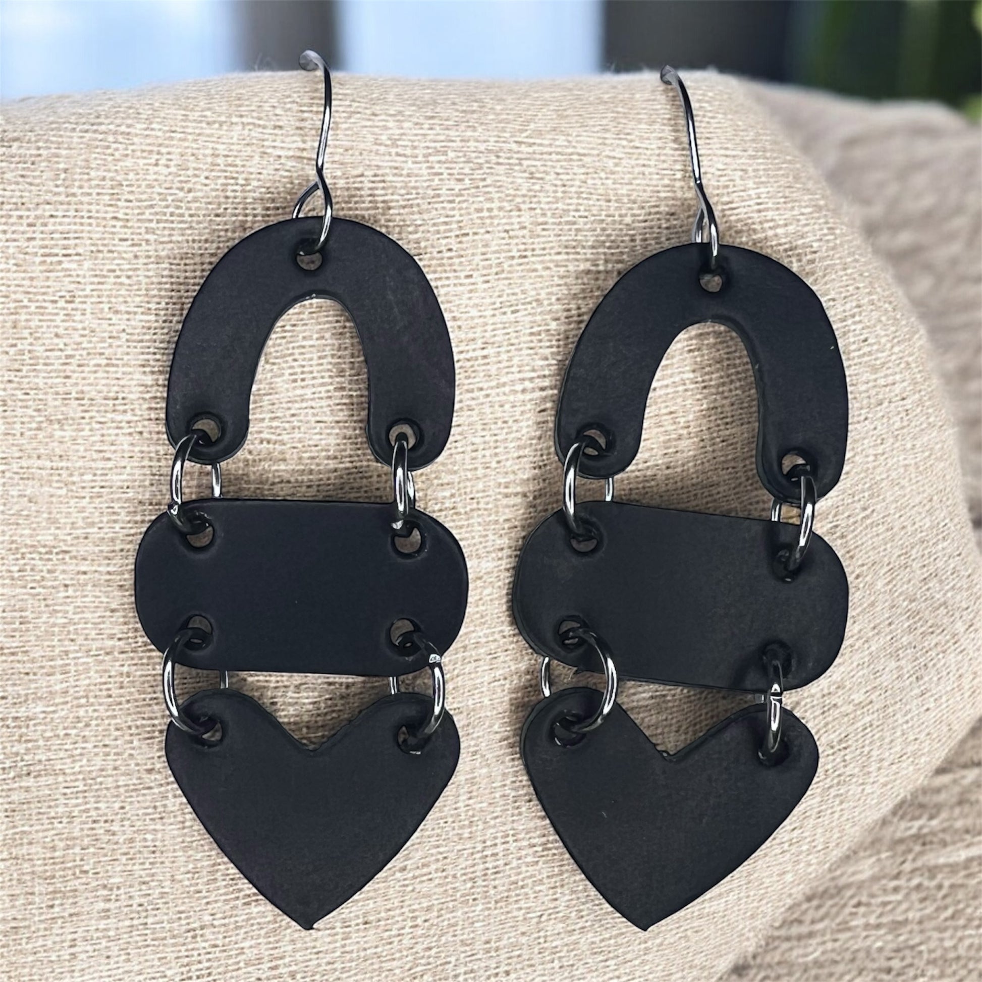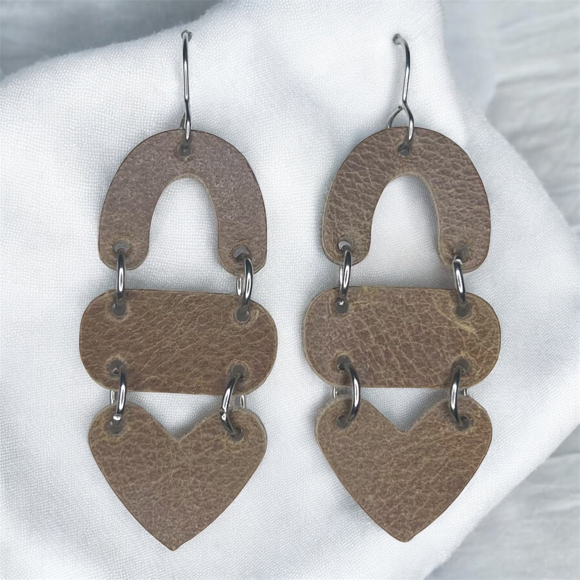 Bold, lightweight, and full of movement 🖤 These dark brown leather heart link drops are the perfect statement pair for winter outfits, cozy layers, and nights out. The linked design adds a little swing while still keeping things comfortable and easy to wear.